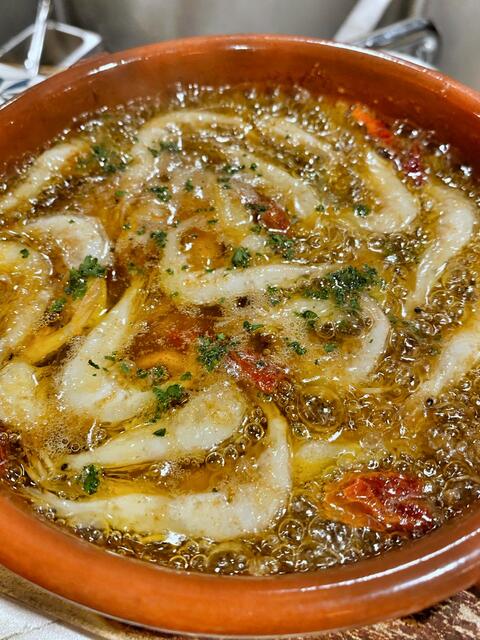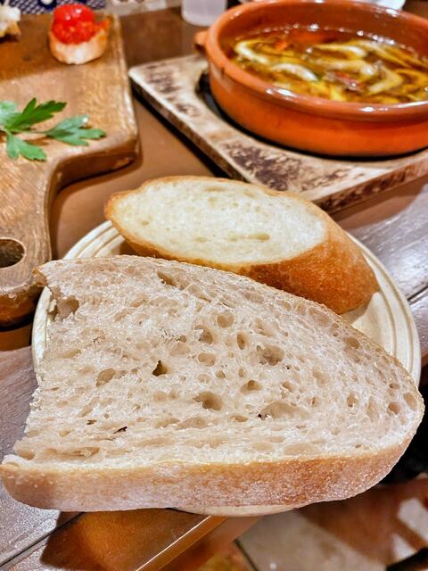 アヒージョにスペルト小麦のパンを出すところって初めて。