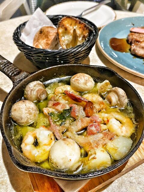 🍤赤道海老とマッシュルームのアヒージョ