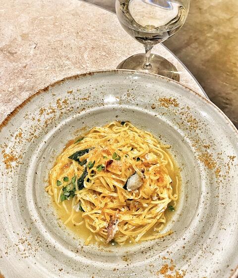 🍝イチョウガニとカラスミのアーリオオーリオ