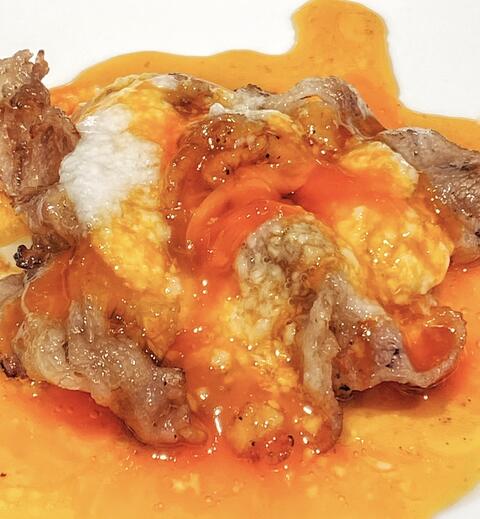 「カペリンキャビアとおろしポン酢の炙りバラカルビ」