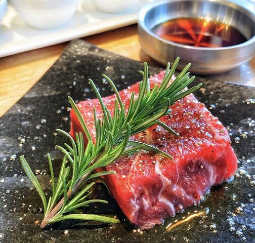 焼いたお肉をトリュフオイルにくぐらせていただきます。