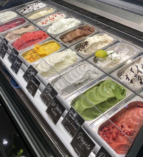 チーズケーキやプリンなどの10種類のスイーツと、18種類のジェラート。