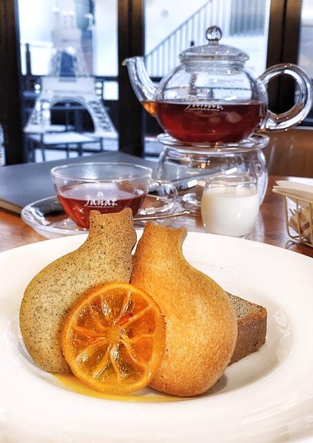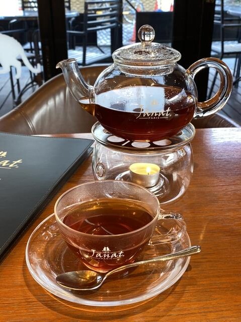 紅茶は数々のフレバーから選べて、ウォーマーつきのポットサービス。