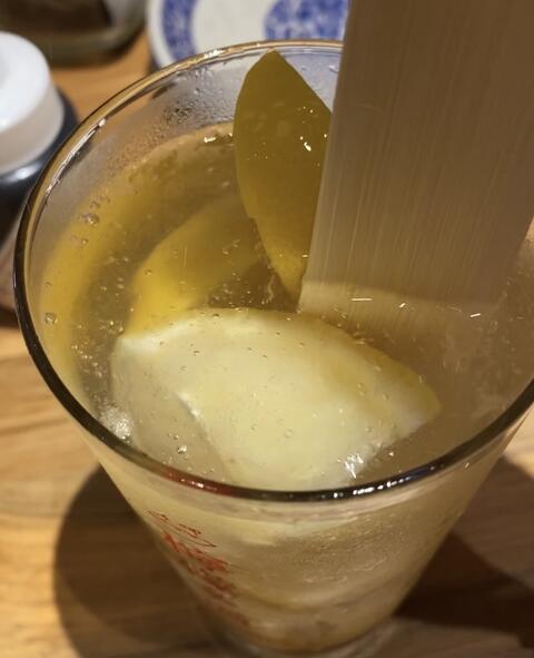 この木べら?でレモンをつぶしていただきます。