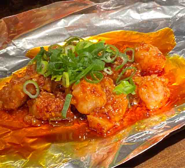 大きな兵庫県赤穂産牡蠣を使った「溺れにんにく牡蠣炒め」