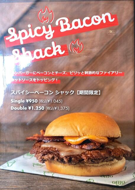 スパイシーベーコンシャック(シングル ¥950 ダブル¥1250)