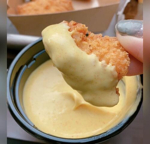 ソースが選べて、ハニーマスタードソース(無料)とチーズソース(¥100)をディップして食べました😋