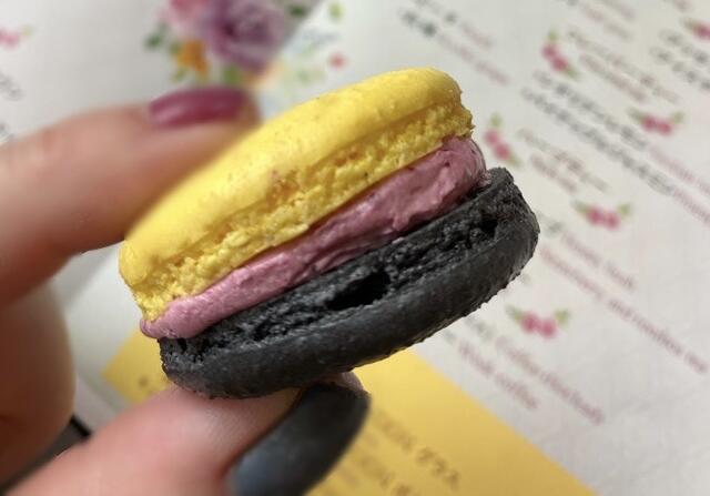 ハプスブルグ家 オーストリア公国の色、黄色と黒を使いカシスのクリームをサンドした「マカロン」も美味しかったです。