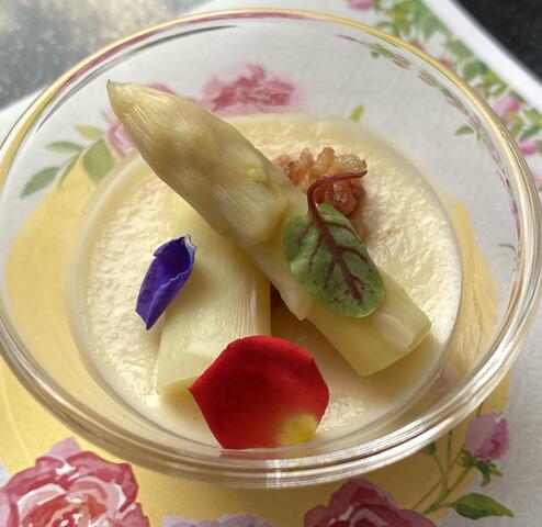旬のホワイトアスパラガスを使ったフラン。