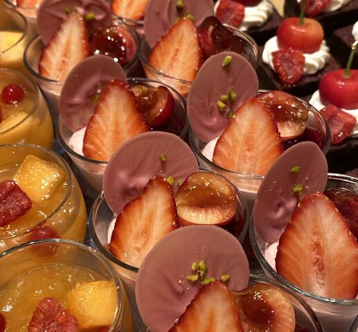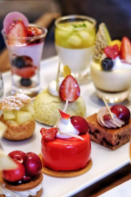「赤い果実とチェリークリーム」のようなグラススイーツは見栄えも良くて食べやすい。