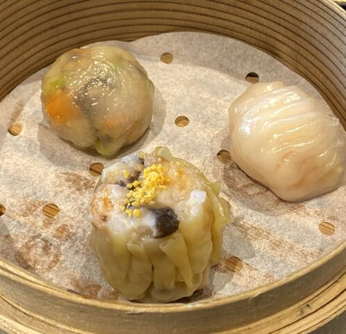中でもハデ目の「焼売」が最高!「海老蒸し餃子」の海老がぷるぷると味わえて皮がつるんと上品。「野菜蒸し餃子」は野菜の宝袋のよう!