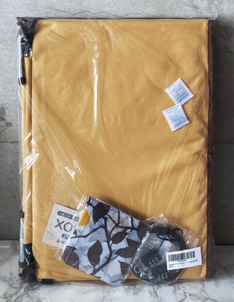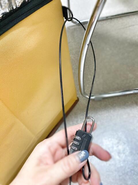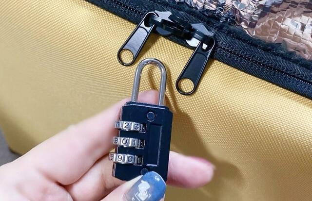 宅配ボックスは、ファスナーで閉じられて、防犯の紐と南京錠が2つついています。