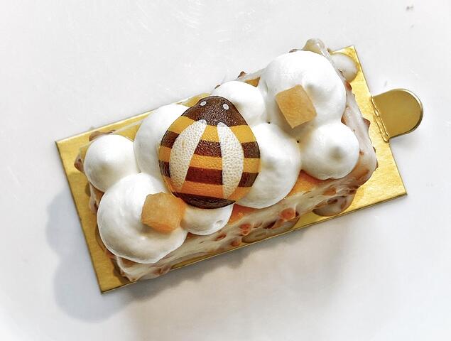 口どけの良いベイクドチーズケーキの上にクランブル、欠片さえ甘いメロン、蜂はチョコレート。