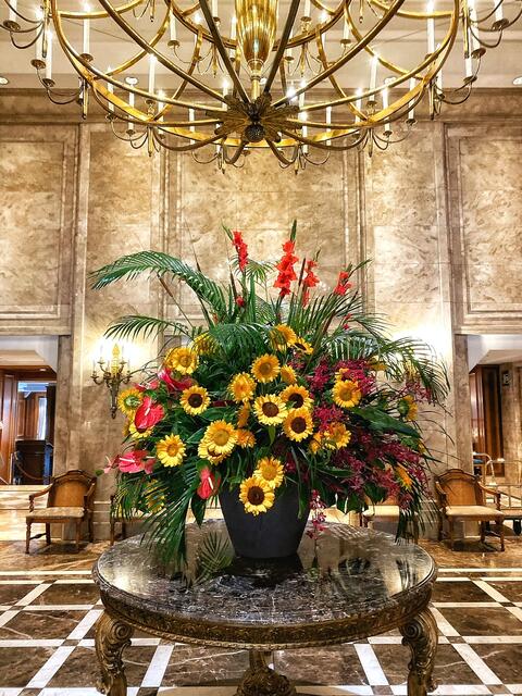 ロビーのお花はオリエンタルムードが感じられるひまわり