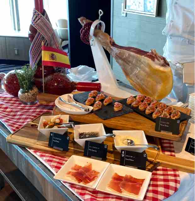 カービングステーションのステーキやセラーノハムのライブステーションもあって豪華✨