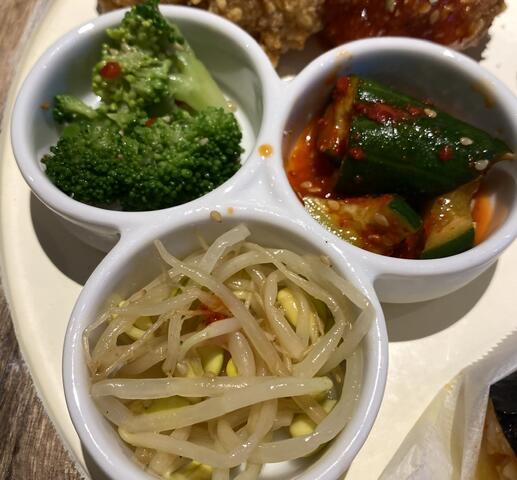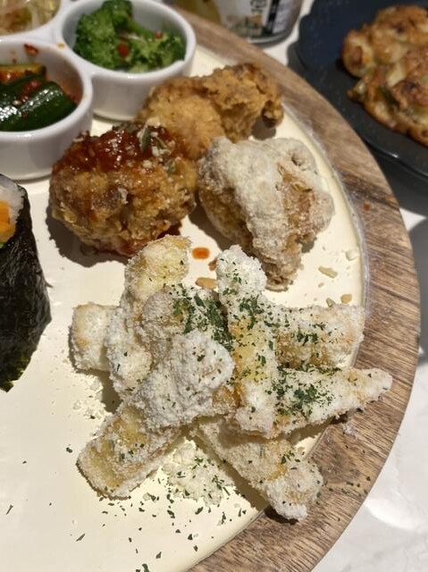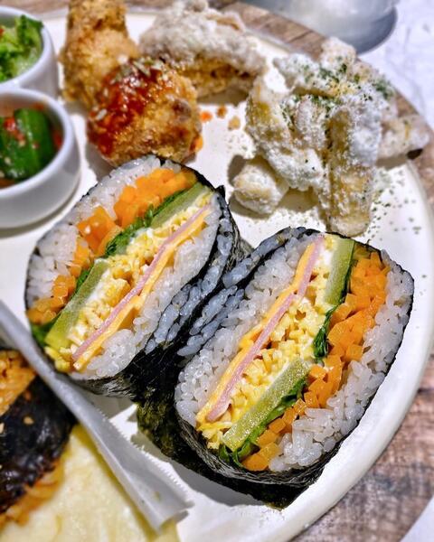 おむすびサンド、チーズポテト、唐揚げ3種類、ナムル3種類つき!