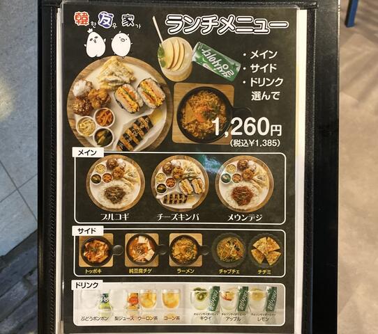プルコギ、チーズキンパ、メウンデジからメインが選べて、