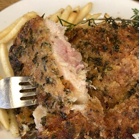 そして大きな「チキンカツレツ香草パン粉揚げ」