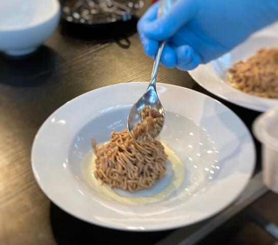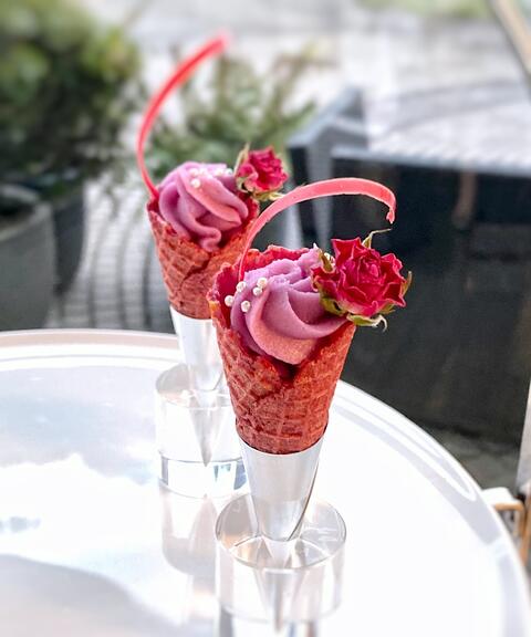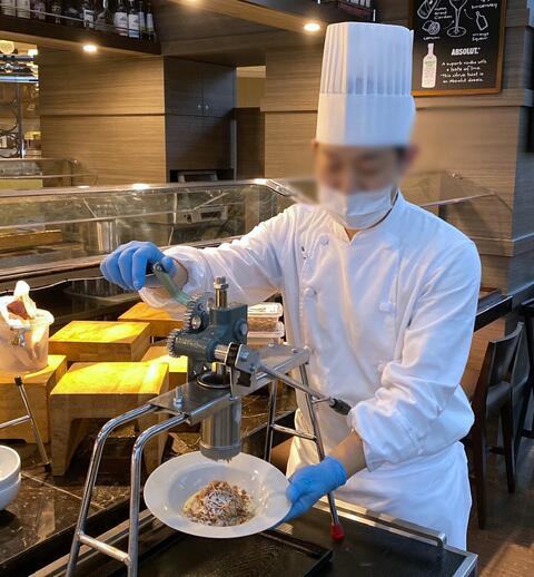 アシェットデセールは、シェフが目の前で作ってくれる、バニラアイスクリームが中に入った搾りたてのモンブラン😍😍