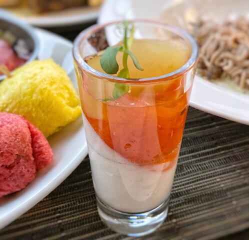 ファーストドリンクは、パイナップルとカルピスで作ったモクテル。