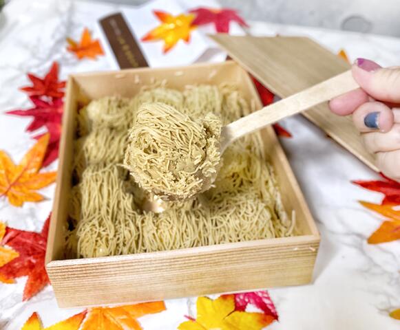 上品でさっぱりとした和菓子と、ふわふわの和栗ペーストがいい感じで、ほっこり。美味しかった〜😍💕おすすめ👍