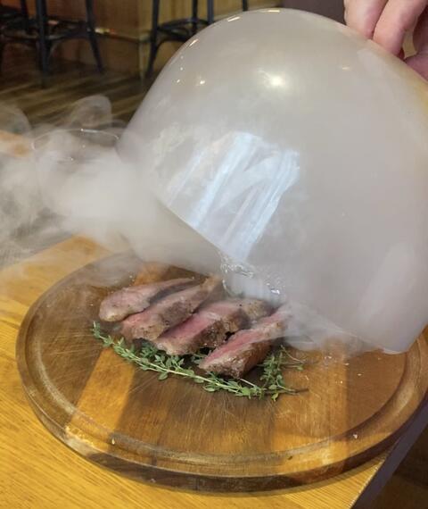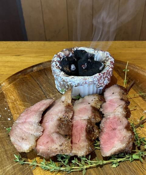 イベリコ豚肩ロースの炭火焼が燻製されてやってきました❣️