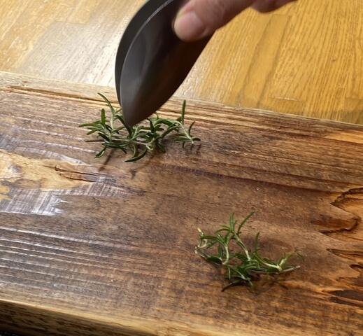 前菜は長い木のボードに、ローズマリーの枝とともに並べられ、