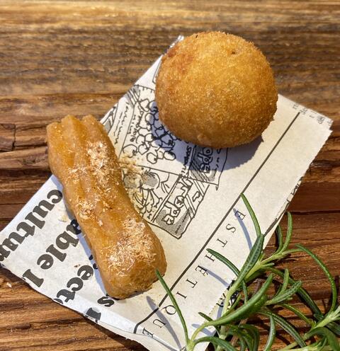 生ハムのコロッケとエビのチュロス