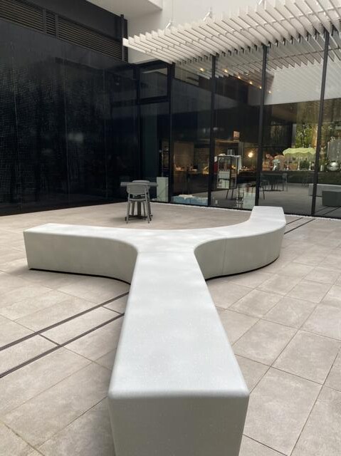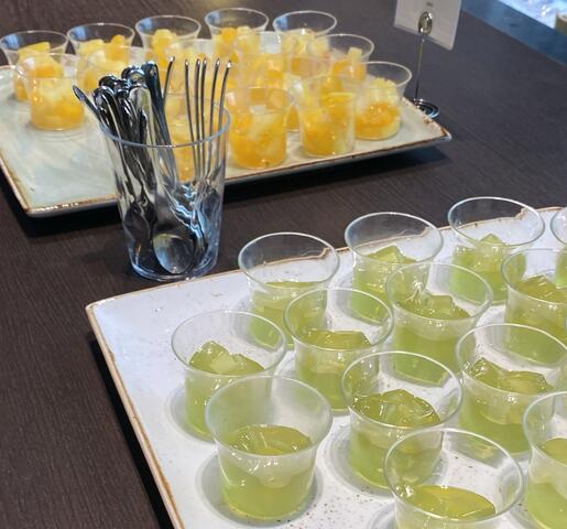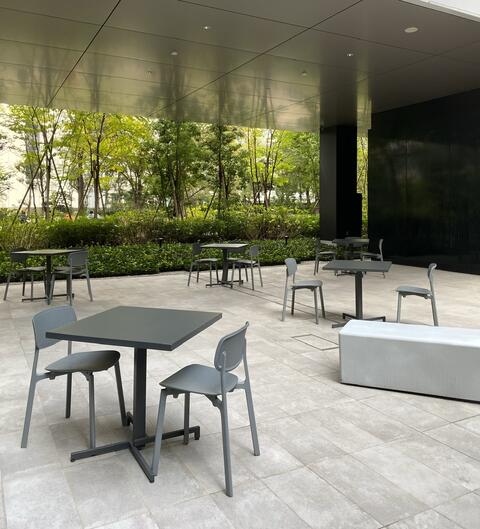 中庭テラスには、ドリンクのみ持ち出し可能。