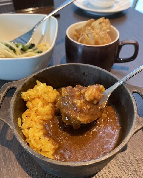 ホテルカレーは、黄色いターメリックライスに盛り付けてもらえます。