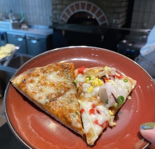 大豆ミートを使った「大豆ミートのスパイスカレーピンサ」、イカと生姜の味わいで美味しかった「大阪イカ焼き風ピンサ」