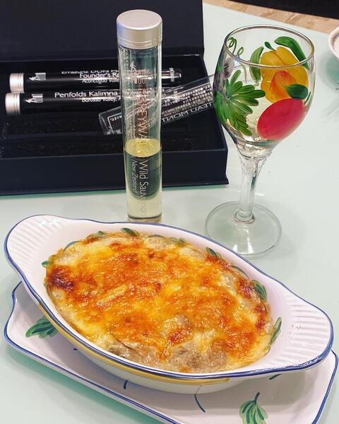 サーモンのカルパッチョサラダと、牡蠣のグラタンを作ったよ😊