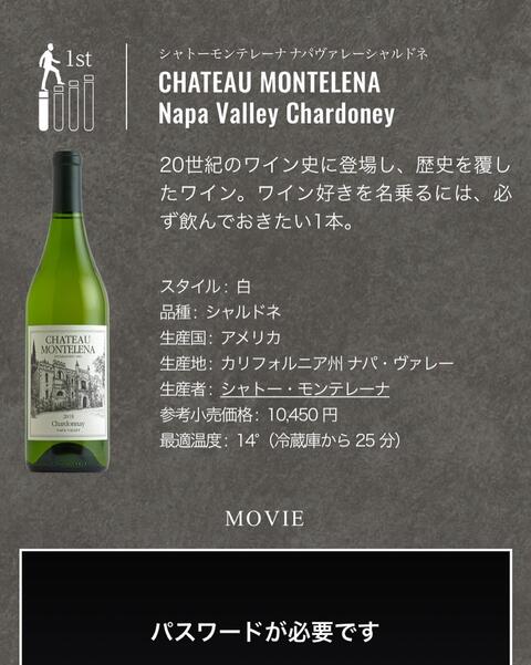 まずは初心者コース、ワインの常識を覆したナパヴァレーのシャルドネから。