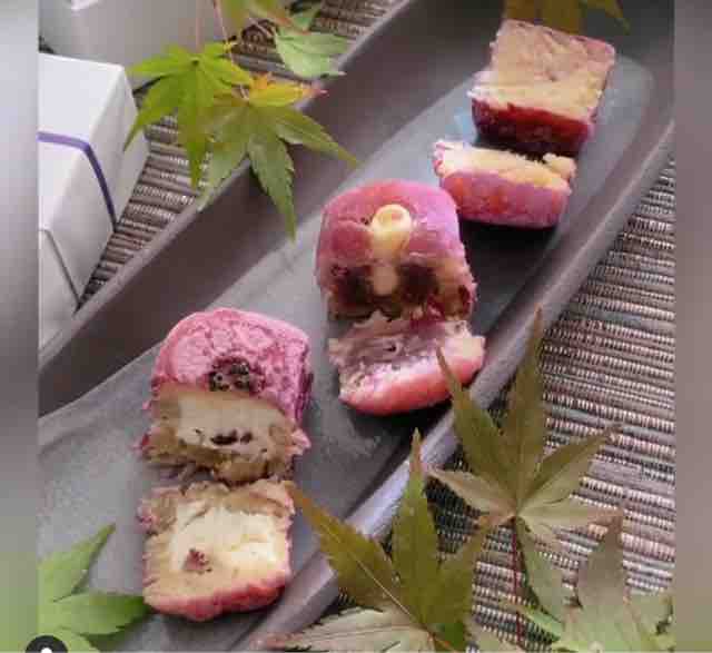外側が紫色で中は黄色っぽくて、見た目がお芋もなのねー😆