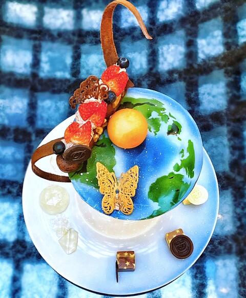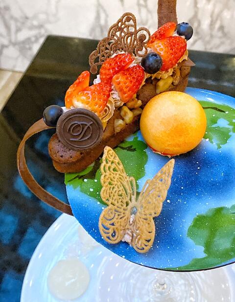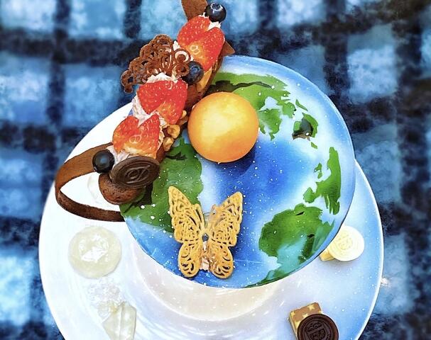 ブラウニー、太陽の柚子のムース、ラングドシャの蝶が飛び交う🌎🦋☀️