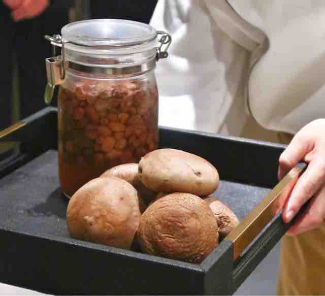 しいたけに塩のみを合わせて発酵させたスープ。クリーミーで最高においしい🤩