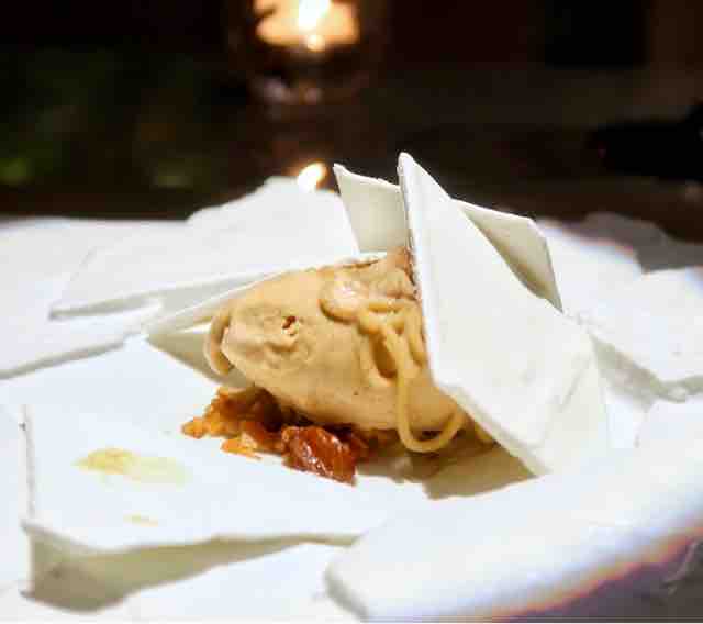 ジャージー乳のアイスに熊本産の栗のモンブラン、焼き栗、コニャック漬けのレーズン。