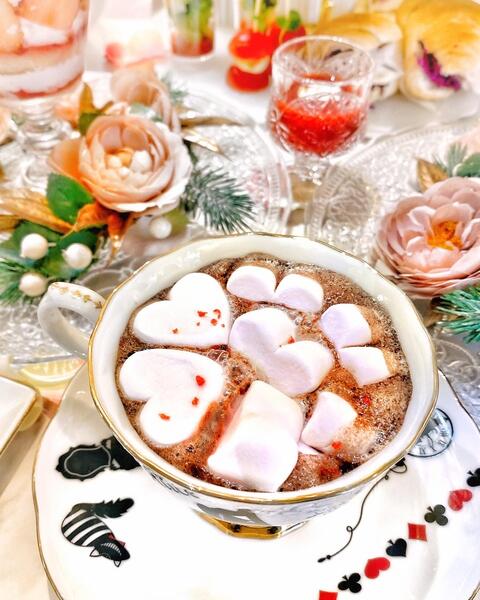 リキュールをかけて楽しむ苺とマシュマロのココアとスイーツを