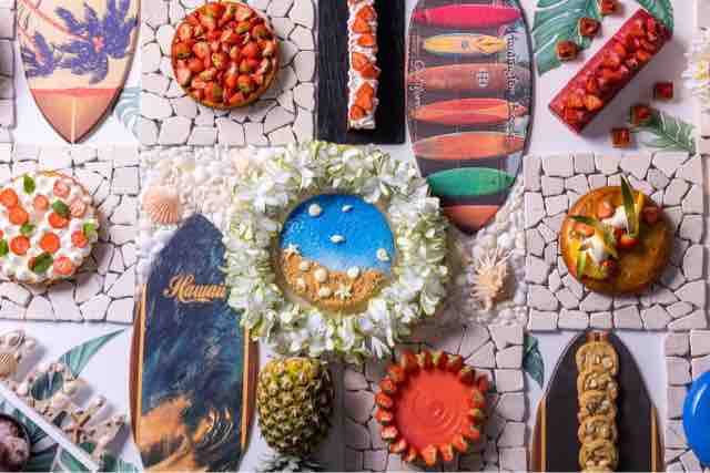 パイナップルのグリルとブラウンシュガー、ココナッツクリームと梅パウダーのドーナッツ、POGモクテルゼリー、アロハ ストロベリービスケット、ココナッツとストロベリーチョコレート ハウピアパイ、ストロベリーチーズケーキとココナッツビスケット、ハイビスカスとストロベリーミルフィーユ、ビーチムースケーキ、ハワイアン グァバケーキ、ハワイアンバター餅、ハワイアンバナナブレッド、パイナップルアップサイドダウンケーキとストロベリー、ハワイアンスクエアチーズケーキ ストロベリーとココナッツ、ウェーブ ミルクチョコレートとストロベリームースケーキ、アソートマカロン、レインボーかき氷、ストロベリーカップケーキ、マカダミアンナッツクッキー、アサイーとストロベリーフロマージュブラン、ストロベリー