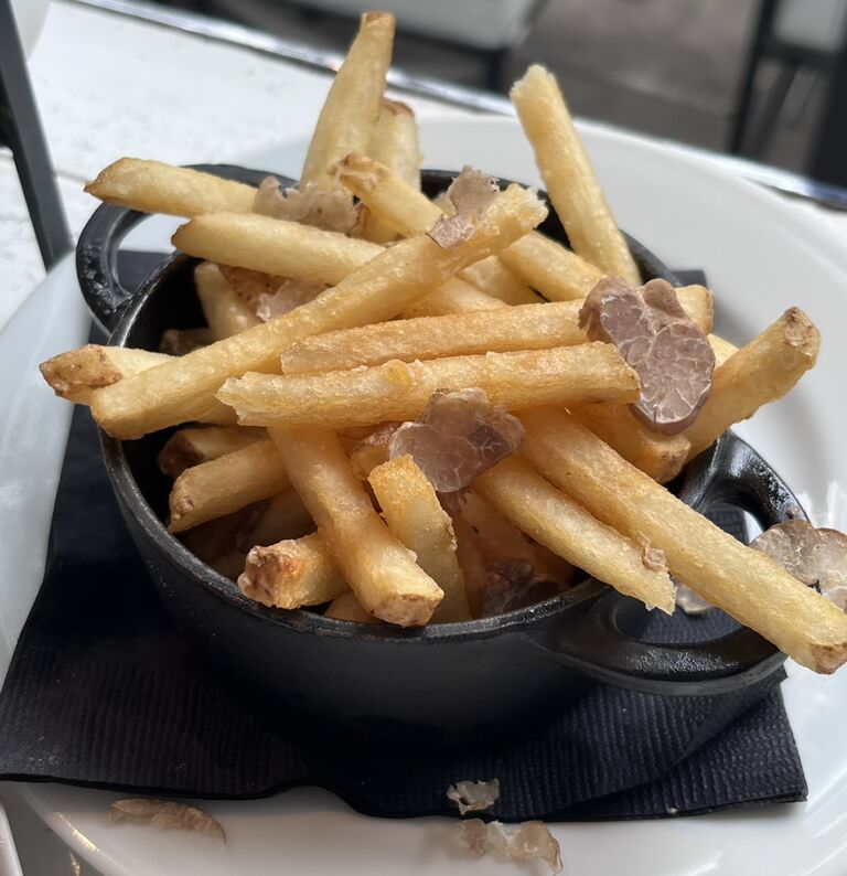 トリュフのスライスがかかったポテトもオプションで、箸休めにおすすめ。