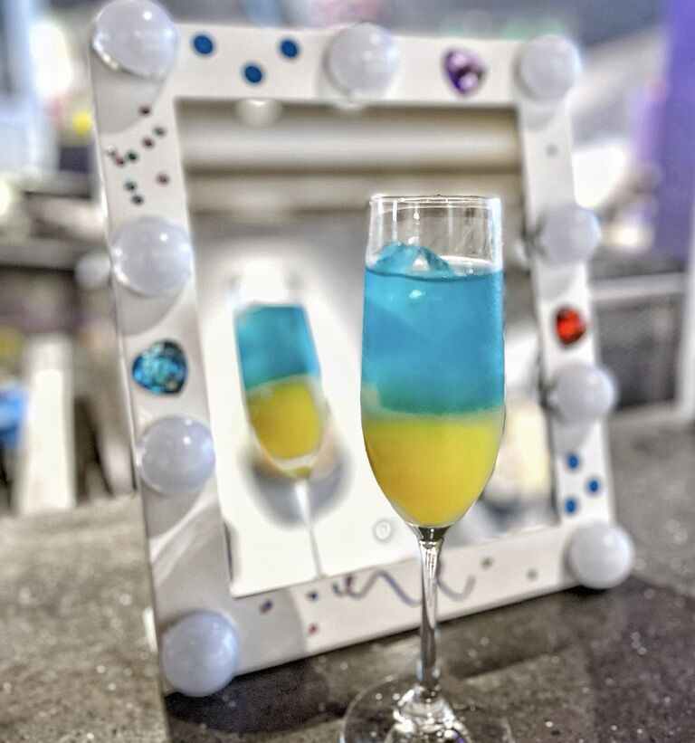 混ぜるとモスグリーンに変化✨🍸