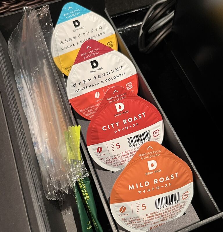 マシンで淹れるコーヒーや、お茶もフリー。