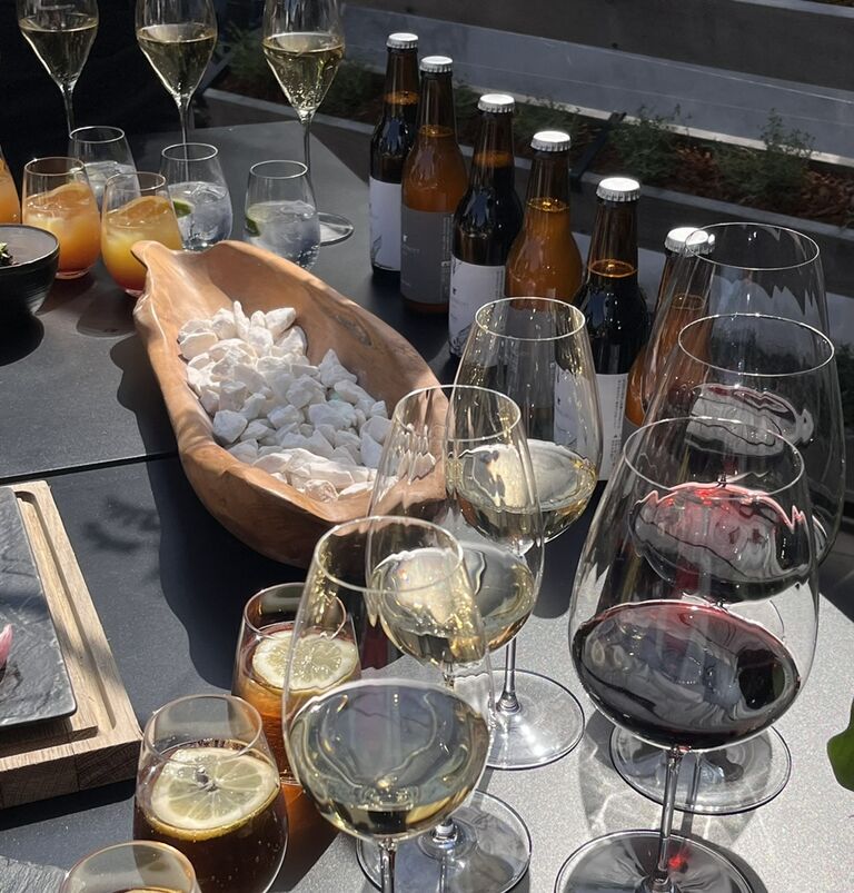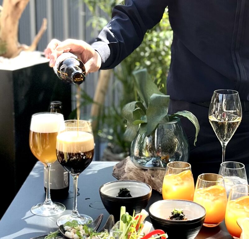 マグナムボトルから専用の機械で注がれる、スパークリングワイン「ランブルスコ」や、コーヒー抽出後の粉を使用したJWマリオット・ホテル奈良のオリジナルビール「アンコール」などもフリーフローでたっぷり楽しめました。