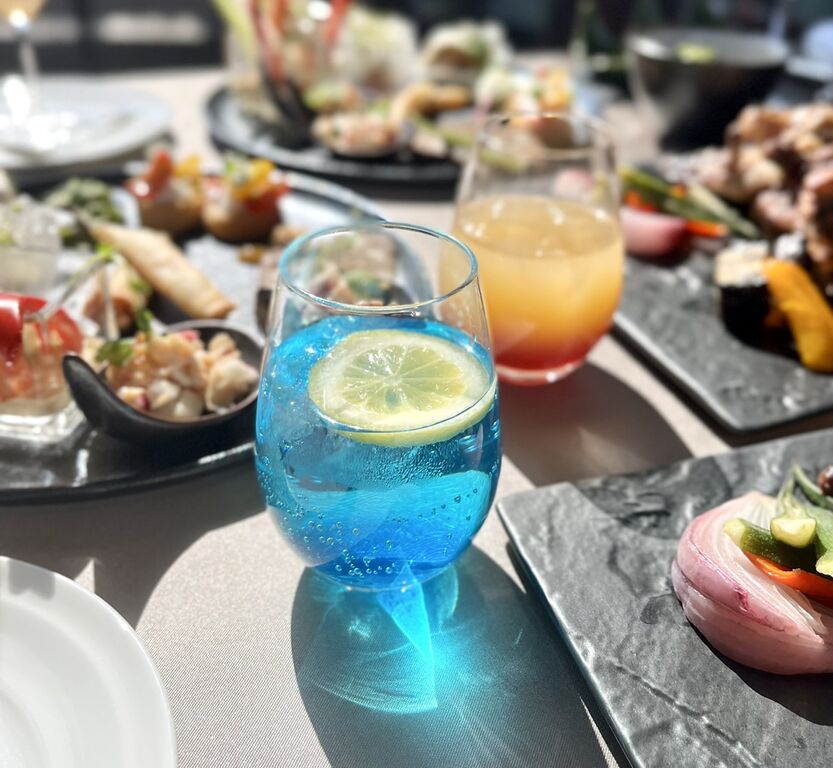 ブルーやオレンジのカクテル。モクテルも対応だそう。
