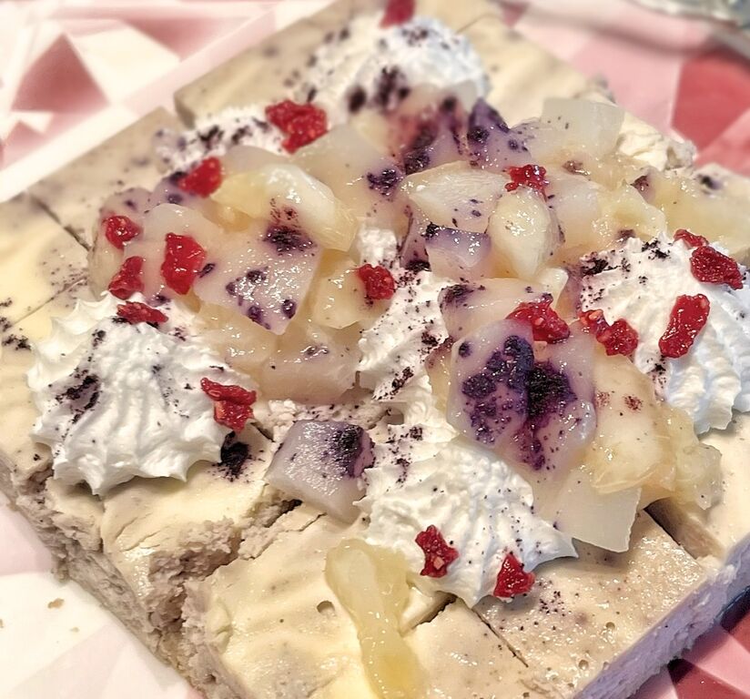夏らしくさっぱりとした味わいで、特に「マキ・ベリーとドライピーチのマーブルチーズケーキ」は、甘さを抑えたベイクドタイプのチーズケーキに軽いクリームとたっぷりの桃をトッピング。