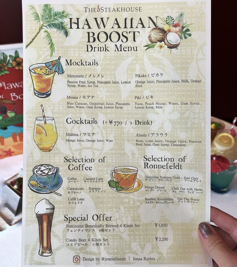 ドリンクは、コーヒーや紅茶のほか、モクテル4種類もフリードリンクなのがすごい!