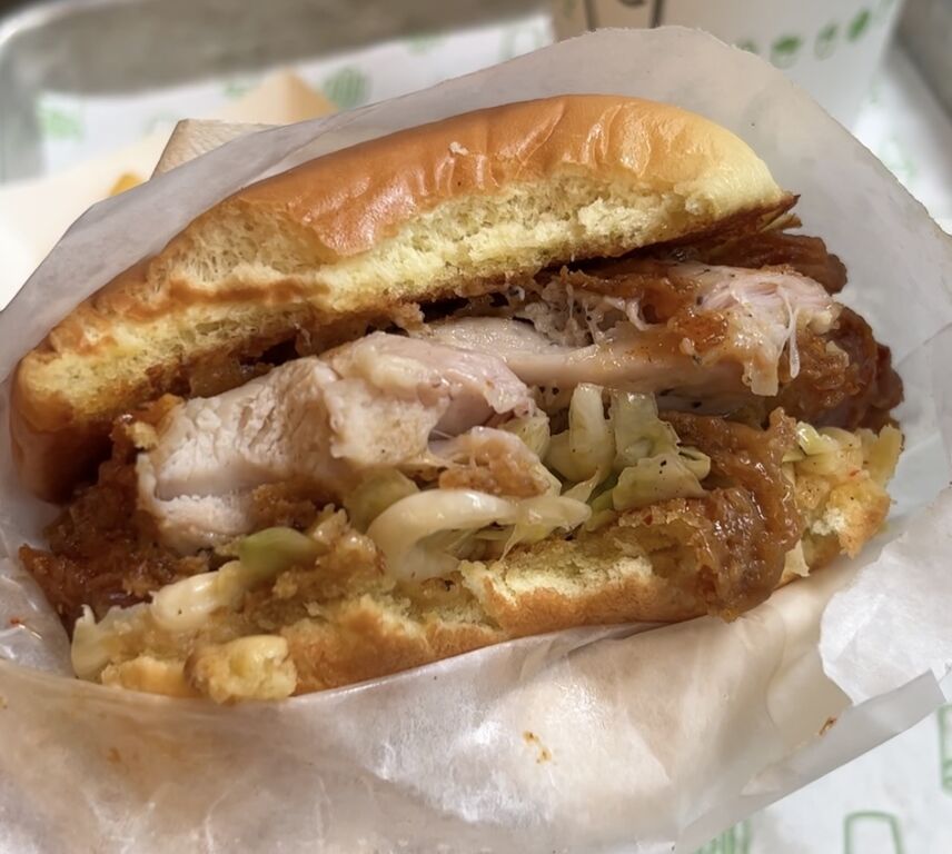 衣がサクサクのチキンは、鶏ムネ肉から鶏モモ肉になったので、食感とジューシーさがUP⤴️