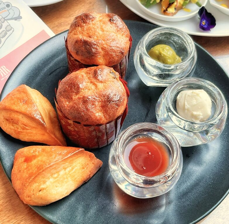 スコーン用のジャム3種(ピスタチオクリーム、ブラッドオレンジのジャム、クロテッドクリーム)もイタリアの国旗カラー。