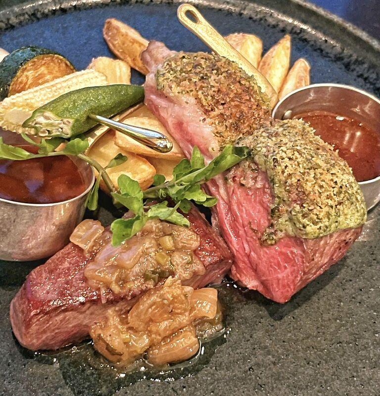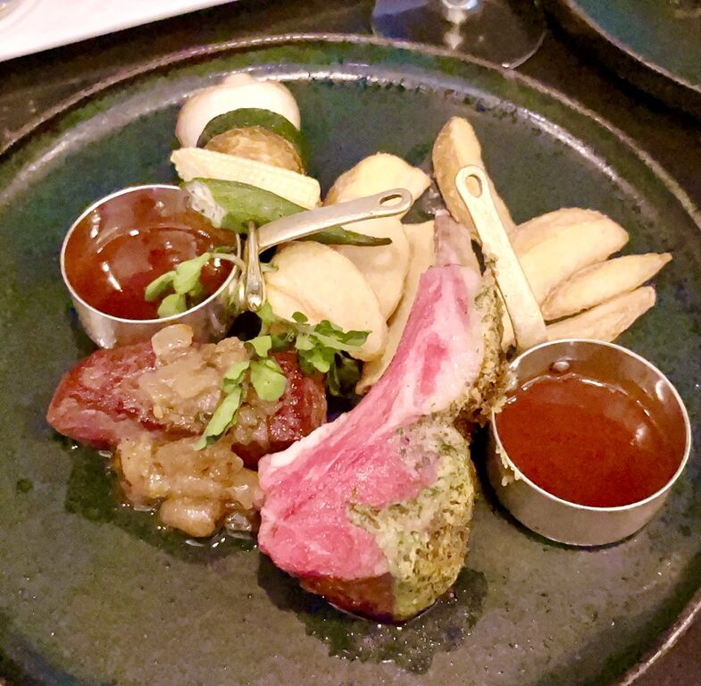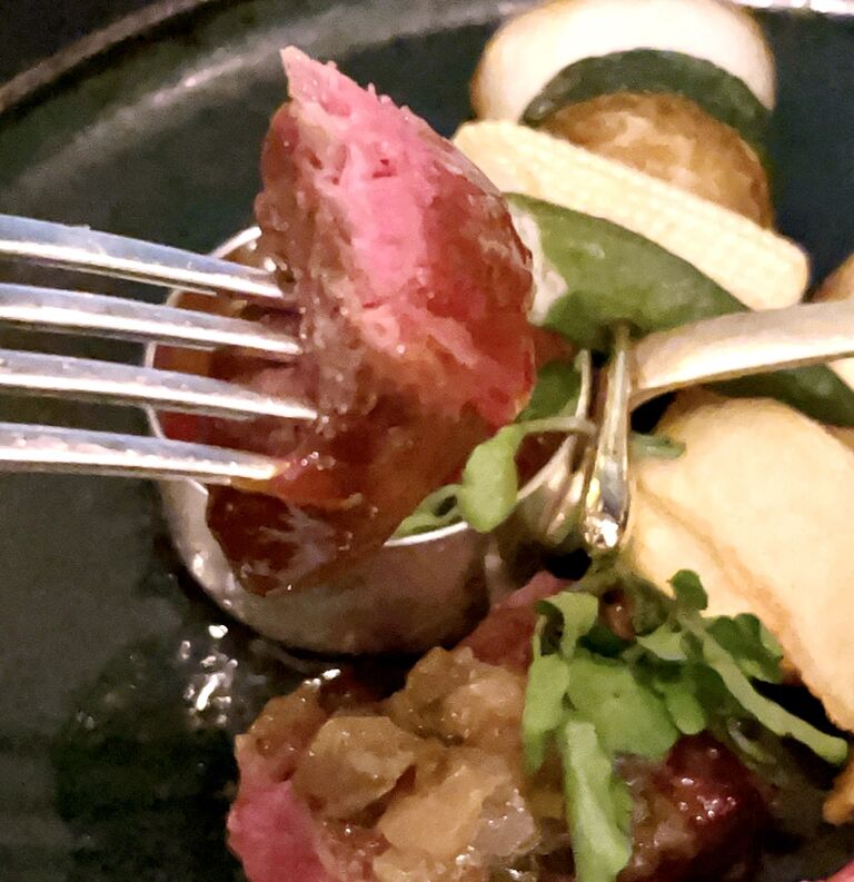 メインは、低温調理で中はしっとりもっちり、表面は香ばしく焼かれた “牛フィレ肉のポワレと子羊のロースト”。