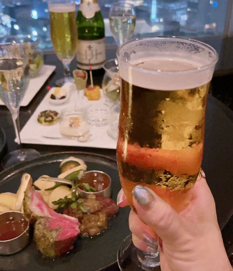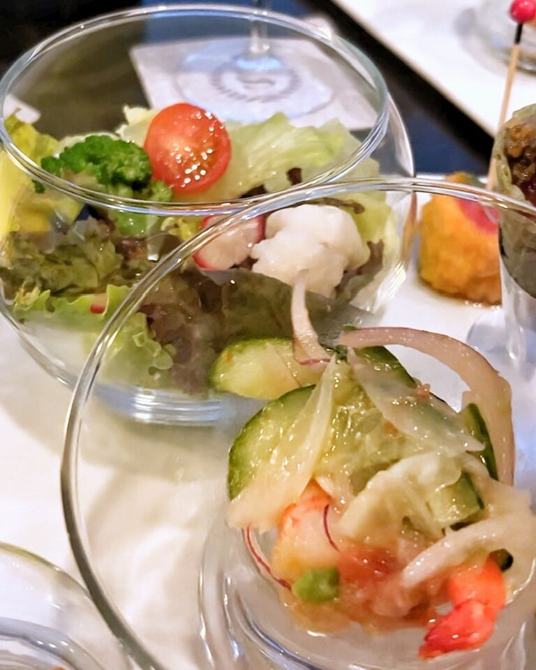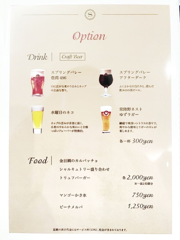 ビールは、キリン一番搾り、ハイネケンエクストラゴールド。先ほどのスパークリングワイン、ルネフランス、フロンテラの赤白ワイン、ウイスキーの「陸」、さらにカクテル(ティーヒート。スミノフレモネード、ベイビュー、シェラトンタワー、「陸」カクテル)やソフトドリンクも飲み放題。